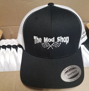The Mod Shop hats front logo and left side writing. Hats $30 CAD