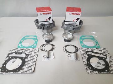 820cc and 840cc big bore designed for the 800cc models, can also be used on the 650cc models. kit is 12.5:1 compression, made to run 91 octane pump gas. Kit comes pistons, rings, wrist pin, clips, head and base gaskets, bored cylinders. We need your cylinders to bore. Fuel tuning required.