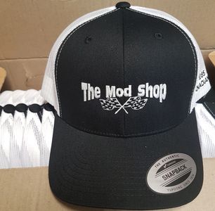 The Mod Shop hats front logo and left side writing. Hats $30 CAD