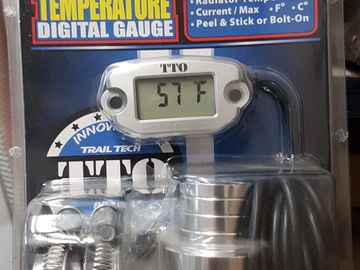 The temperature gauge adapter goes inline on the coolant hose and you mount the screen in your desired location. This gauge is a good way to keep an eye on engine temps. Gauge has adapter size 19mm, 22mm, 25mm.