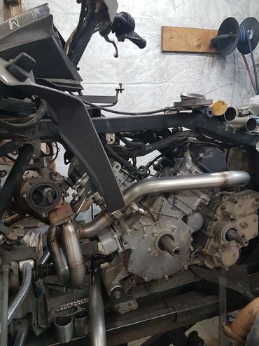 We helped out with a 1300cc twin project that Craig Sparks was working on. He bought a blown up Polaris 800 Pro chassis and removed the engine and stuffed this 1300cc twin inside. He had a fun time stuffing the massive twin pipes underneath the hood but he got it done. We helped out with the project by dynoing the engine to get it tuned and helped with some pointers along the way when he had questions.